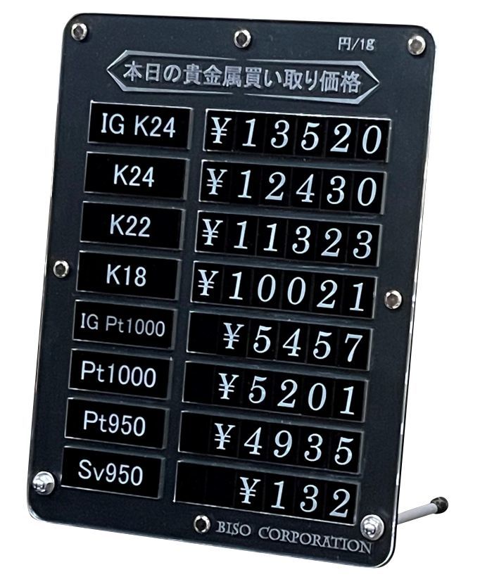 | 製品仕様 | 貴金属買取りプライスボード(S) | |