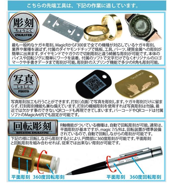 オプション品各種 マジック彫刻機用 機器の能力を最大限に発揮するための別売品です。 |