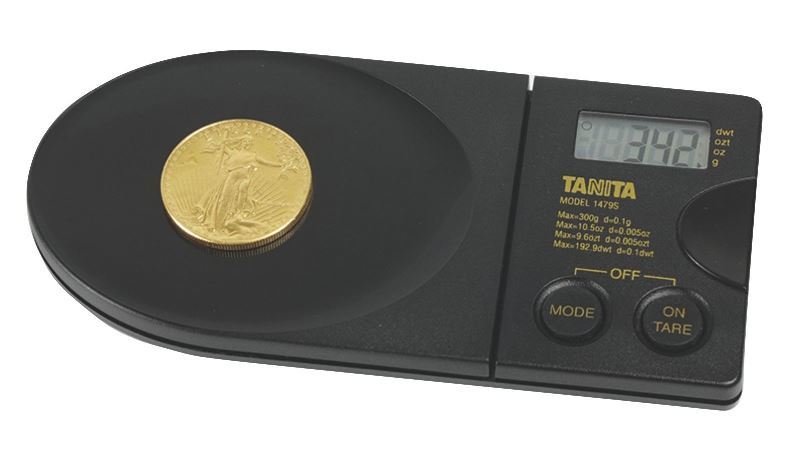 タニタ製のシンプル操作のコンパクト電子天びんです。