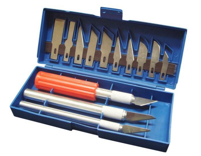 プラモデルの造形加工に使用できます。柄が3種類と替え刃が13枚セットです。