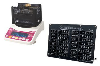 GKS-300 貴金属テスター プライスボード(L)セット販売 お買い得なセット販売です。通常購入価格より16000円以上お得です。 その他、ルーペ、手袋、クリーナー、セーム革がセットになってます。 209,800円(税別) |