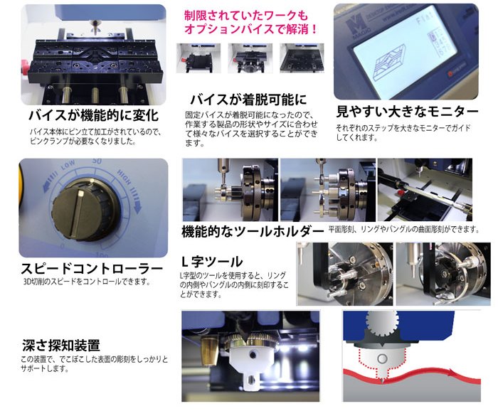 オプション品各種 マジック彫刻機用 機器の能力を最大限に発揮するための別売品です。 |