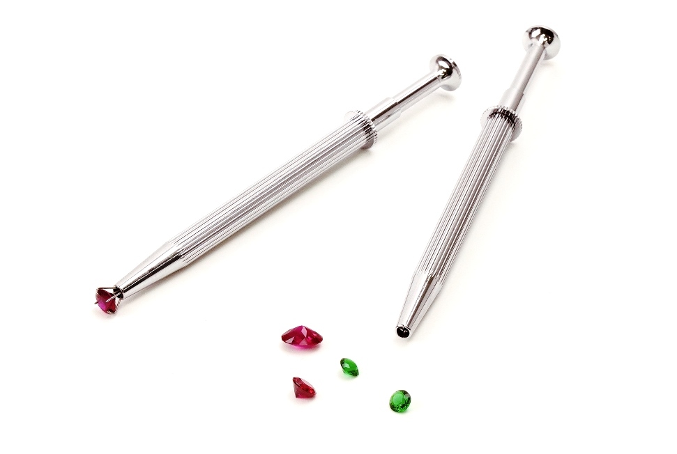 プッシュ式のストーン用ピンセットです。宝石や細かいパーツを爪で確実につかみます。
