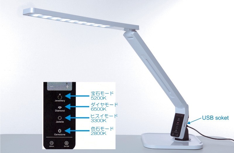 ジュエリー、宝石に最適な4色のライト(色温度)に切替が可能なジュエリーライトです。