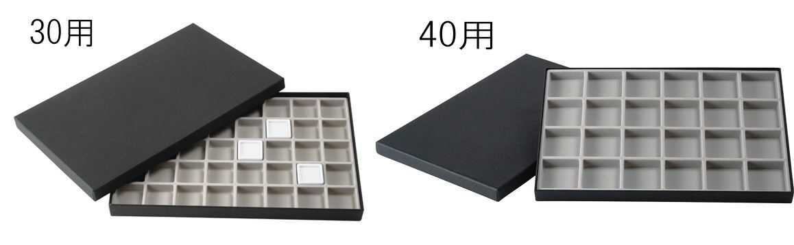 ルースケース用蓋ありトレー ルースケース専用の蓋ありトレーです。店舗ディスプレイ、ストック品に最適な専用トレーです。 30用(40個収納) 40用(24個収納) |
