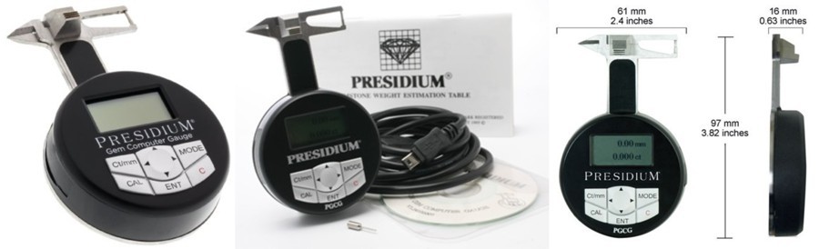 プレシディアム社の精密ゲージです。ダイヤモンドは、ブリリアンカットなら直径を測定する