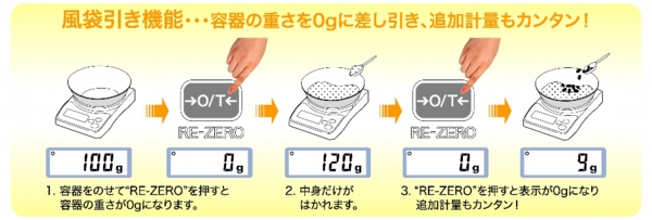 | 機 能 | オートパワーオフ、風袋引き機能、2電源方式、計量結果ホールド |