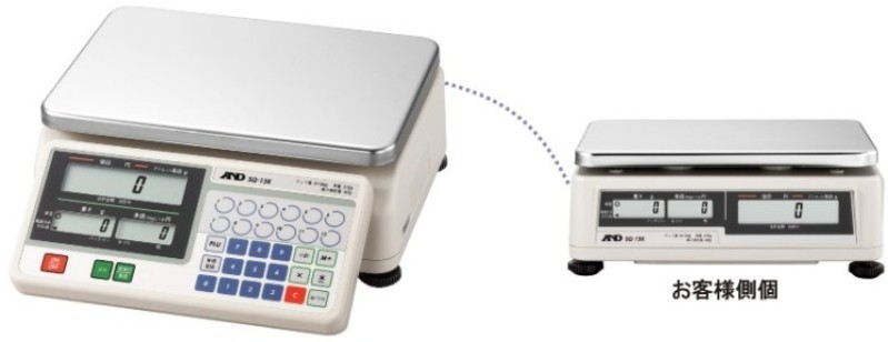 エーアンドデイ製の高性能、対面式店舗料金はかりです。500個までの単価を記憶可能です。