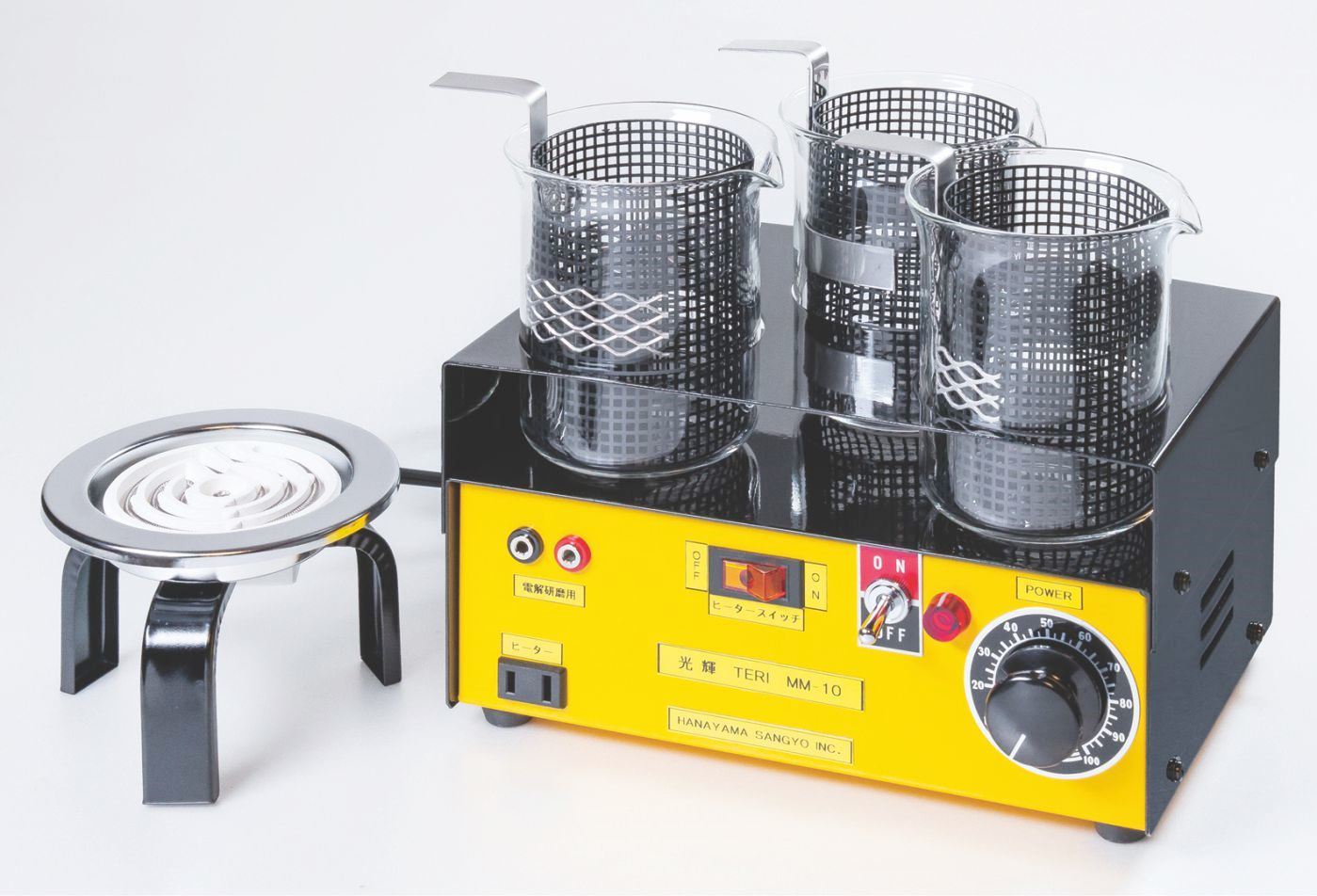 小型万能メッキ装置 光輝(テリ)MM-10 メッキ、脱脂、電解研磨ができます。 だれでも簡単にメッキ、表面処理が可能です。 |