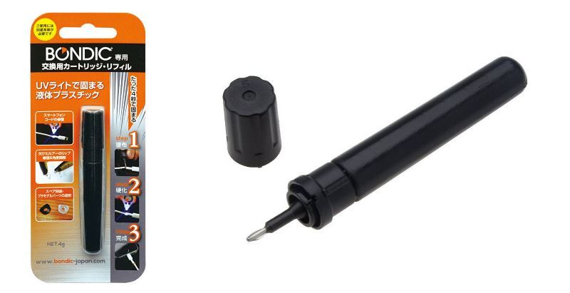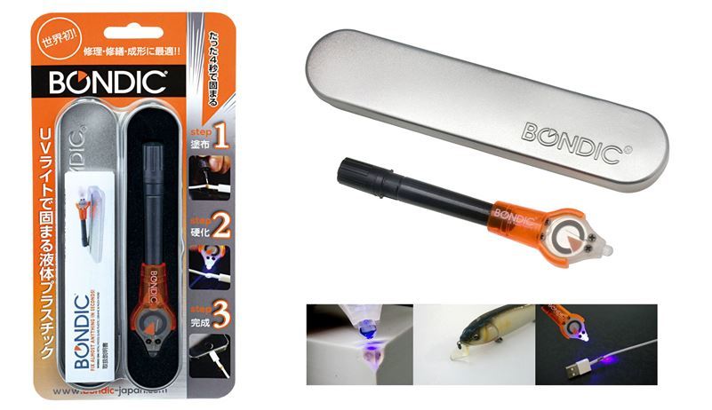 歯科医である創始者の一人が歯の最新治療法「ダイレクトボンディング」からヒントを得て開発しました。付属のBONDIC専用UV LEDライトで紫外線をたった4秒あてることにより様々な素材を強力に接合させることができるので、破損した部品の接着や修理に最適です。 さらに、固めたプラスチック部分は削ることも可能なので、欠損した部品の修復にも威力を発揮し ます。